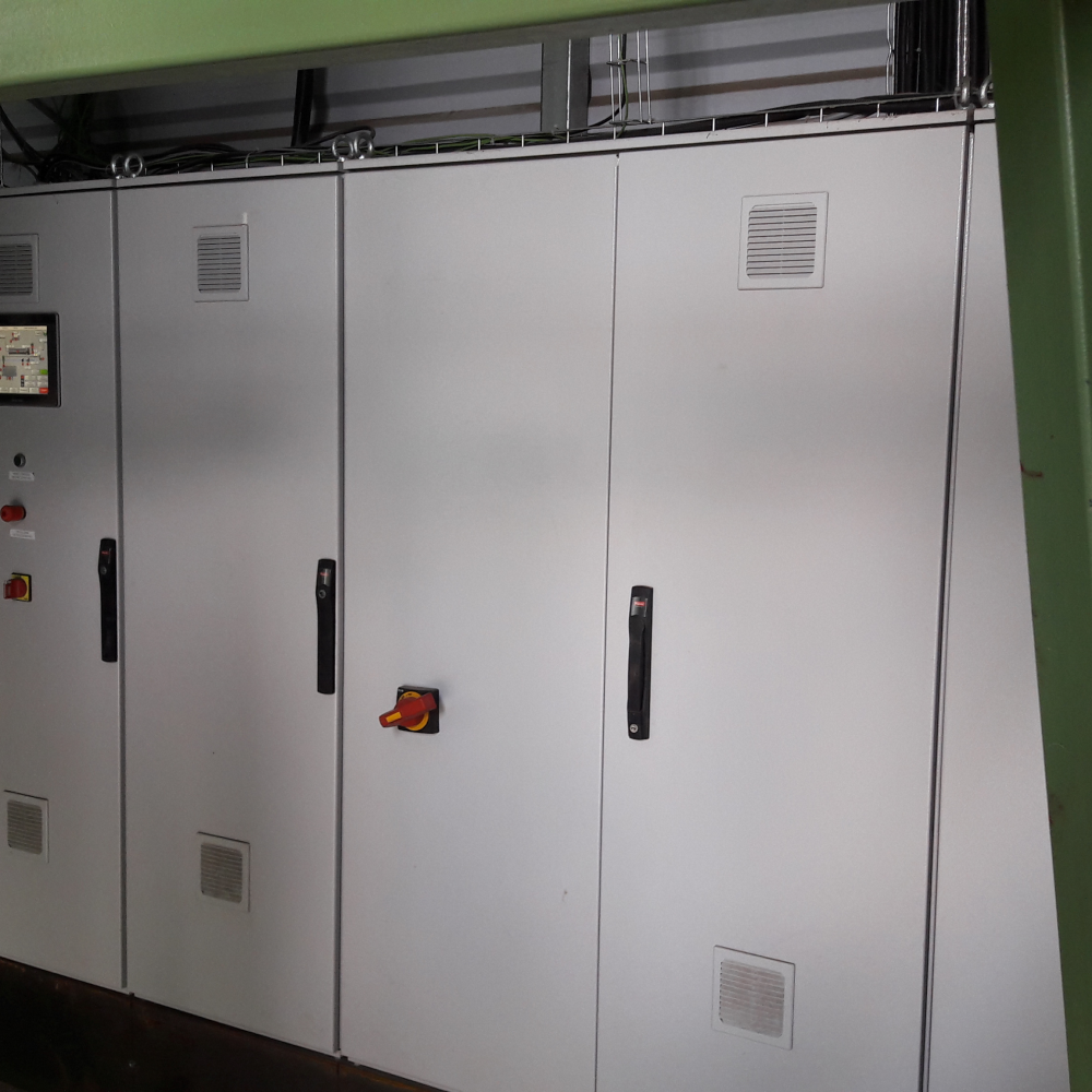 • Automatyki – opartej o sterownik Siemens S7-1200 i panel HMI Weintek oraz aparaty elektryczne Siemens